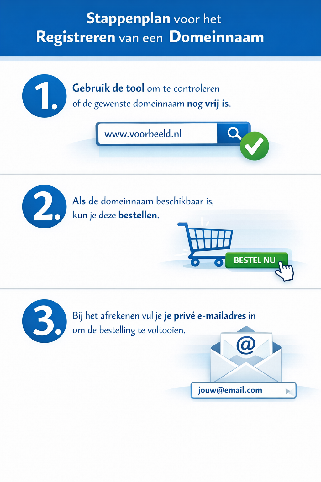 Een snelle hosting, een eigen zakelijk e-mailadres en natuurlijk jouw domeinnaam. Laten we beginnen!